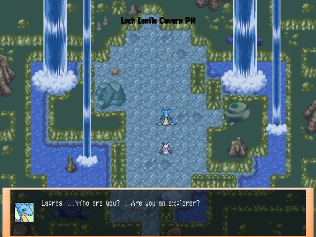 At the end of Loch Lenile Cavern, you will find Lapras, who will politely ask you who you are before challenging you to a battle for disturbing her home and for causing a ruckus.