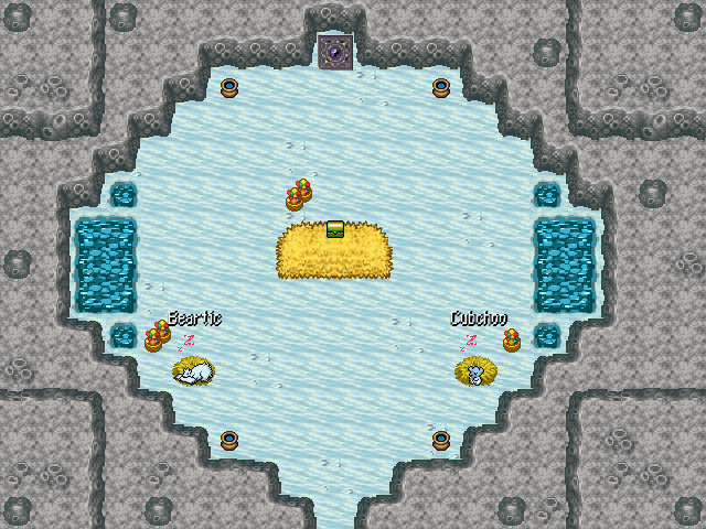 After defeating the rogue gang, you find the mother Beartic's family at the final room of the dungeon with a Deluxe Box on a bed in the center.