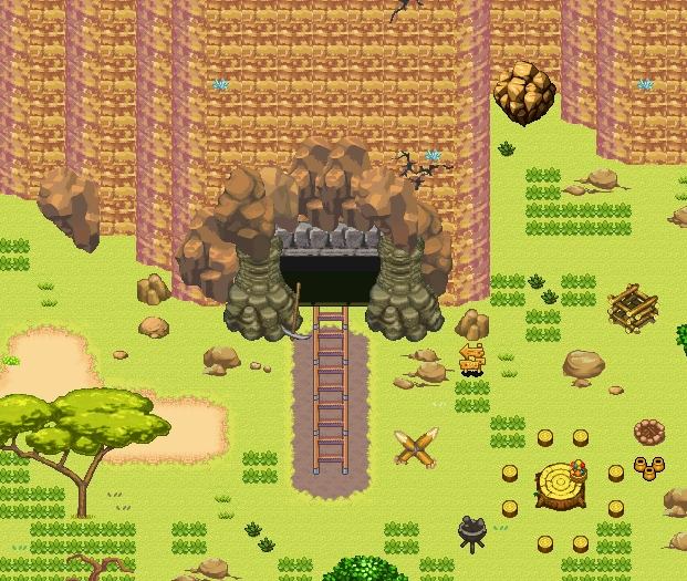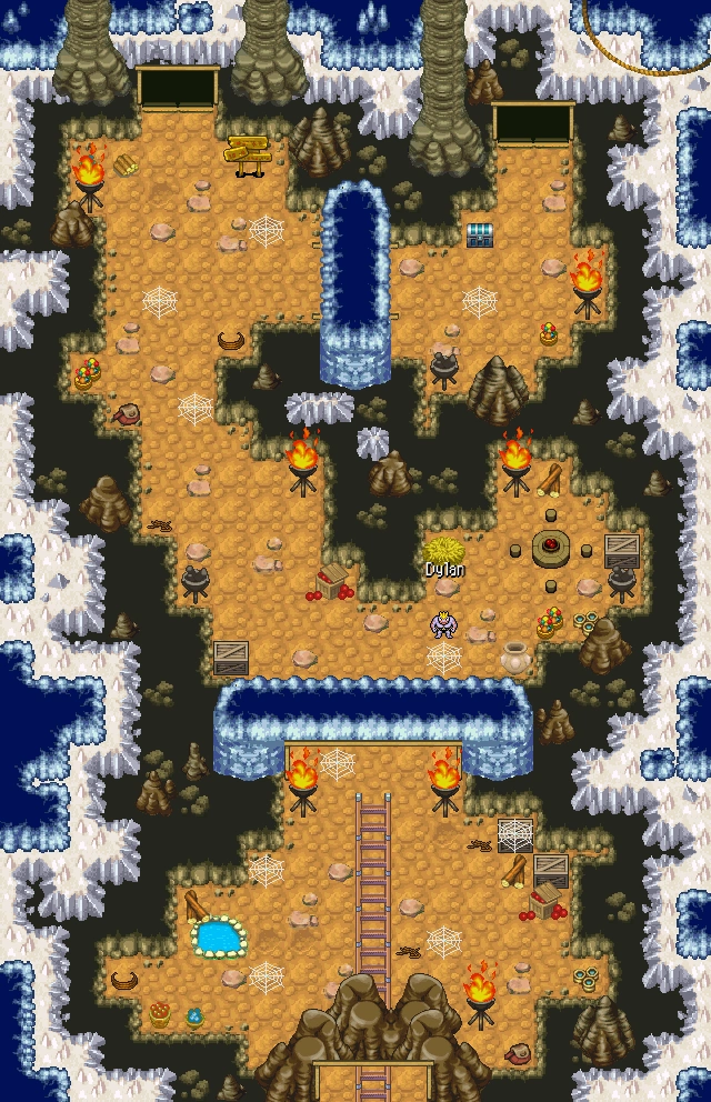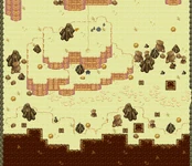 The Arid Cavern is a puzzle where the objective is to get through the map using the newly obtained Rock Climb, going through various sand pool warps. At the start of the map is a warp that exits to Tanren City Plaza. Completing the puzzle successfully gets you to the entrance to Tanren Mines Depths.