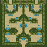 In the starting room, each warp will put the player in the room on the warp's opposite side (e.g. left warp takes you to the right side of the map). From there, there's a switch that removes the tile blocking the rest of the room. The warps in the room will either warp you to the other side, or back to the beginning. At the end of the room, there's two warps. The warp on the side closest to the wall in the middle will warp you the topmost room of the current room's opposite side (e.g. being on the left room will have the warp take you to the top right room), wherein the path in the dungeon exclusive to the respective side can be entered.